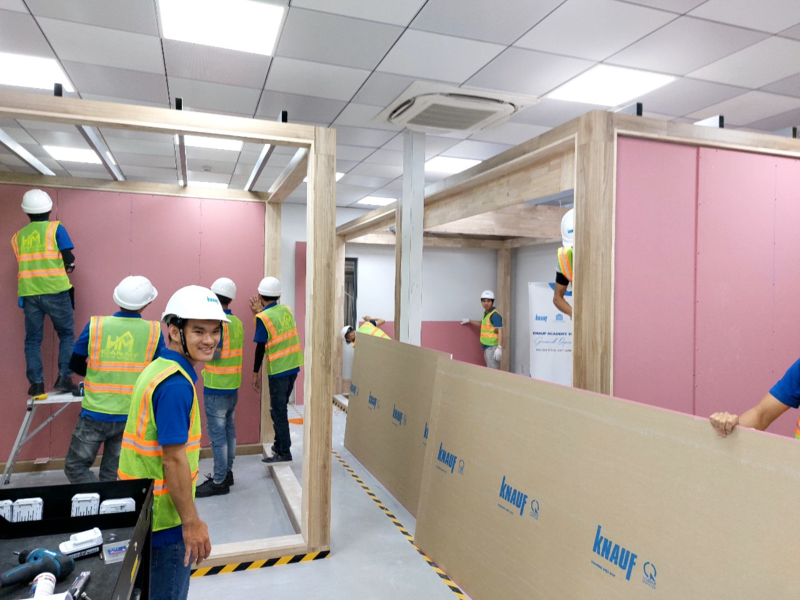 - Có khả năng tư vấn và triển khai hệ thống vách, trần thạch cao cách âm tối ưu (sử dụng nhiều lớp, kết hợp vật liệu tiêu âm, bông thủy tinh/khoáng), phù hợp cho rạp chiếu phim, phòng thu, hoặc nhà xưởng.